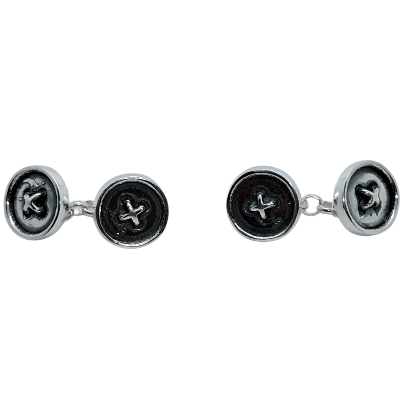Gemelos Boton de Camisa chico doble con cadena de plata de ley de 925 mls.Con unas medidas aproximadas de 10 mm cada boton.