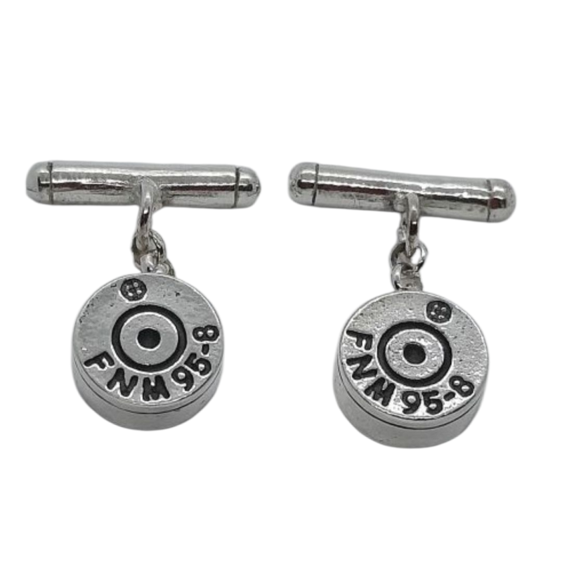 Gemelos Casquillo de Bala con cadena de plata de ley de 925 mls.Con unas medidas aproximadas de 1 cm.