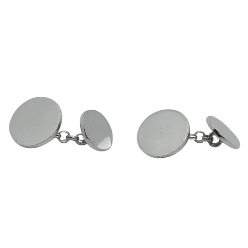 Gemelos de plata de ley lisa de forma redondo doble con cadena.