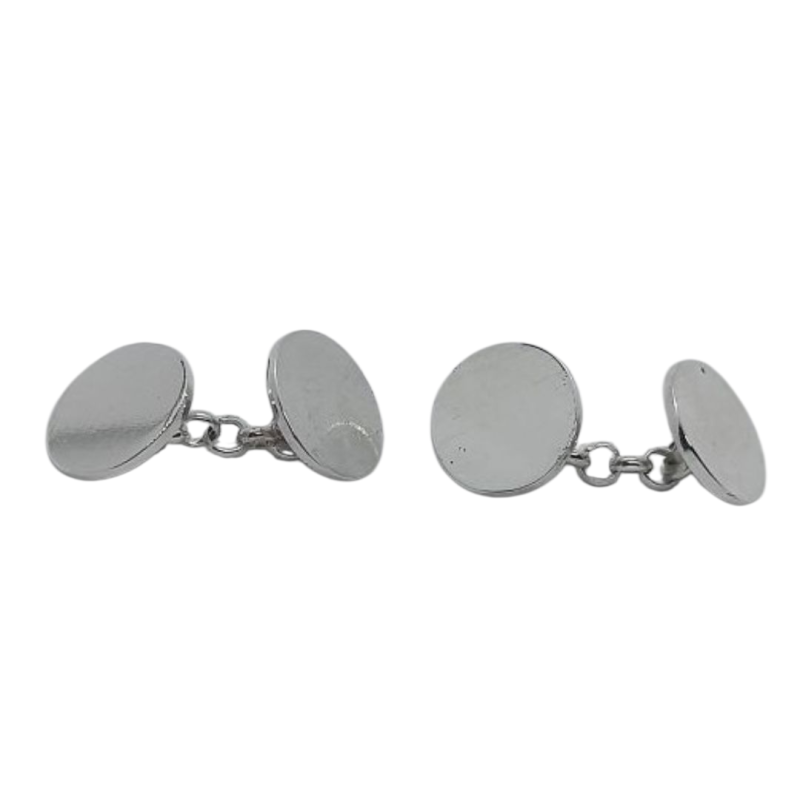 Gemelos de plata de ley liso de forma redondo doble con cadena.