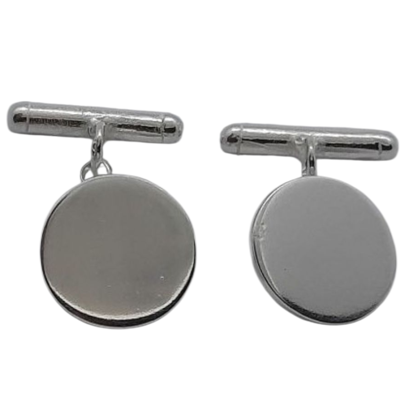 Gemelos lisos de forma redondo con cadena de plata de ley de 925 mls con unas medidas aproximadas de 14mm.