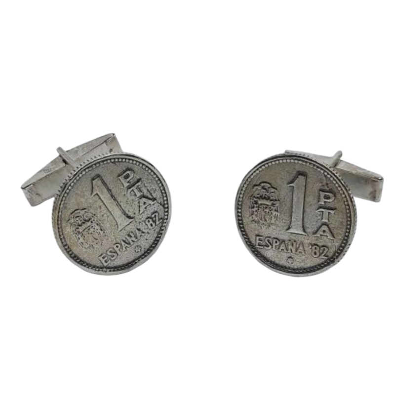 Gemelos Peseta con submarino articulado de plata de ley de 925 mls.Medidas de las pesetas de 20mm