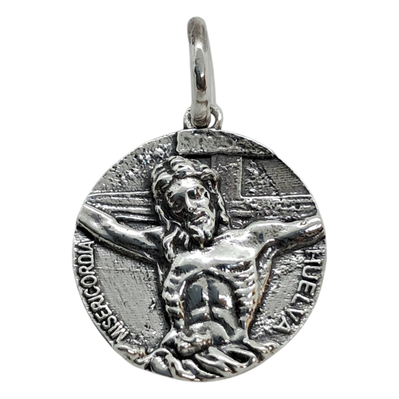 Medalla con imagen Cristo Misericordia en relieve de forma redonda de plata de ley de 925 mls con unas medidas aproximadas de 19 mm.La parte trasera lisa.