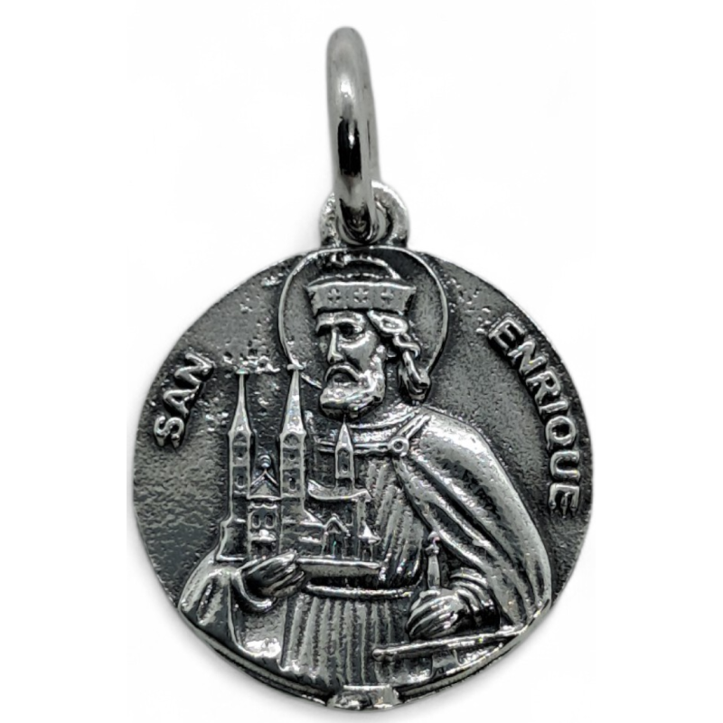 Medalla con imagen San Enrique en relieve de forma redonda de plata de ley de 925 mls con unas medidas aproximadas de 19 mm.La parte trasera lisa.
